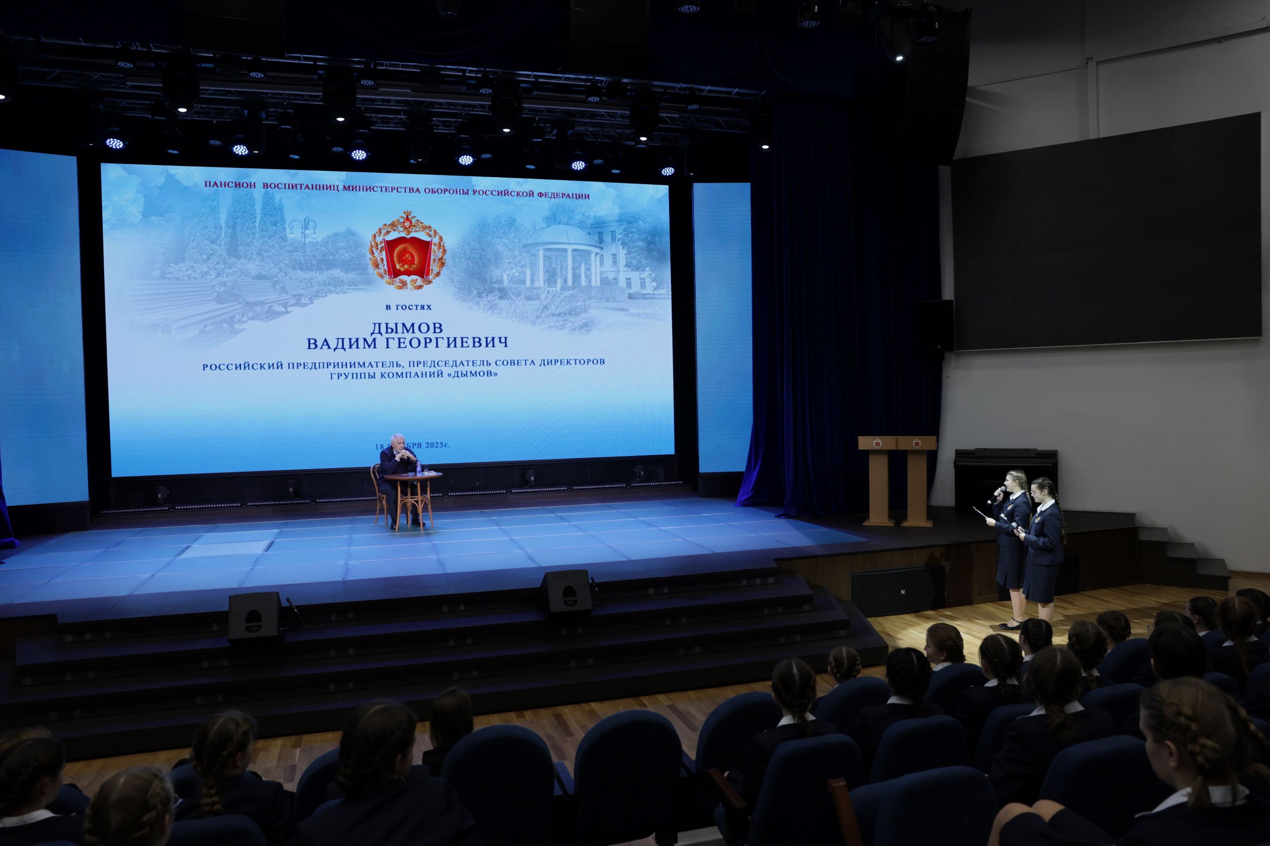 В Пансионе воспитанниц состоялась встреча воспитанниц с известным российским предпринимателем, председателем совета директоров группы компаний «Дымов» Вадимом Георгиевичем Дымовым