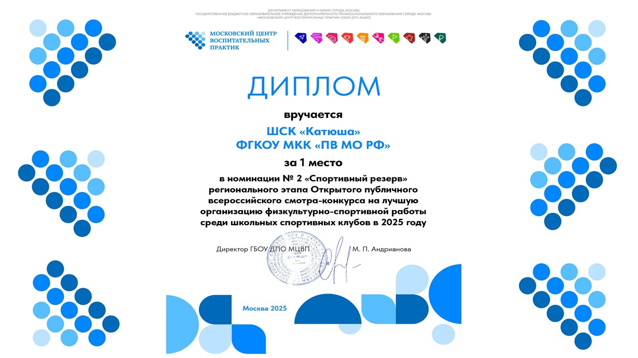 Спортивный клуб Пансиона воспитанниц МО РФ «Катюша» признан лучшим школьным спортивным клубом Москвы в номинации «Спортивный резерв»