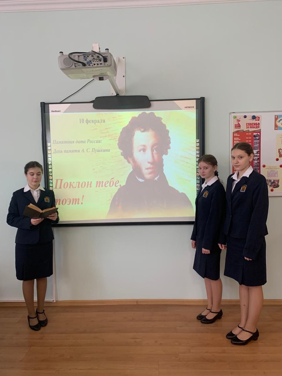 Воспитанницы 9-го курса рассказали, что именно в этот день, 10 февраля (29 января по старому стилю) 1837 года, произошла трагедия. В их сообщении была представлена хронология событий, звучали воспоминания современников. Для воспитанниц был подготовлен обзор музея в Санкт-Петербурге, где Пушкин провел последние дни своей жизни.