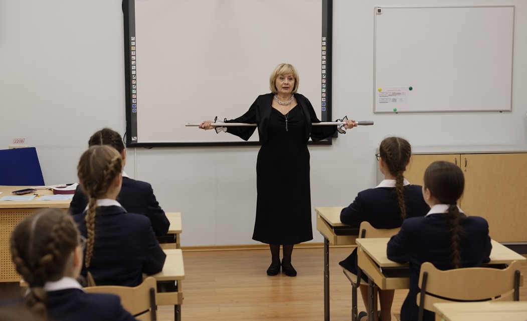 Ольга Станиславовна Родионова рассказала об истории создания первого в России женского учебного заведения – Смольного института благородных девиц, о роли императриц Екатерины II и Марии Фёдоровны в развитии этого учреждения. Из рассказа Ольги Станиславовны воспитанницы узнали, что первоначально это учреждение предназначалось для обучения дочерей потомственных дворян, но уже год спустя было открыто отделение «для девушек недворянских сословий».