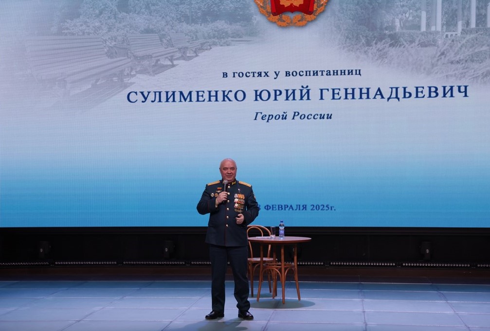 В рамках реализации программы междисциплинарного образовательного проекта «Zнать! Помнить! Гордиться!», посвященного Году защитника Отечества в России и 80-летию Победы в Великой Отечественной войне, в Пансионе воспитанниц состоялась встреча с гвардии старшим лейтенантом, Героем Российской Федерации Сулименко Юрием Геннадьевичем.