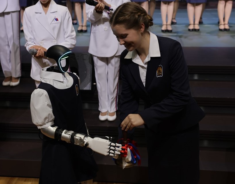Кульминацией праздника стал приход необычного гостя – робота Даши, который обратился к воспитанницам и преподавателям с поздравительной речью, продемонстрировав уникальные возможности своего интеллектуального помощника на русском языке. Затем робот Даша вместе с воспитанницами позвонил в колокольчик, возвещающий о начале нового учебного года, чем показал на деле запрограммированные уникальные манипуляторы. Впервые в России первый звонок на Дне знаний подал робот-гуманоид.