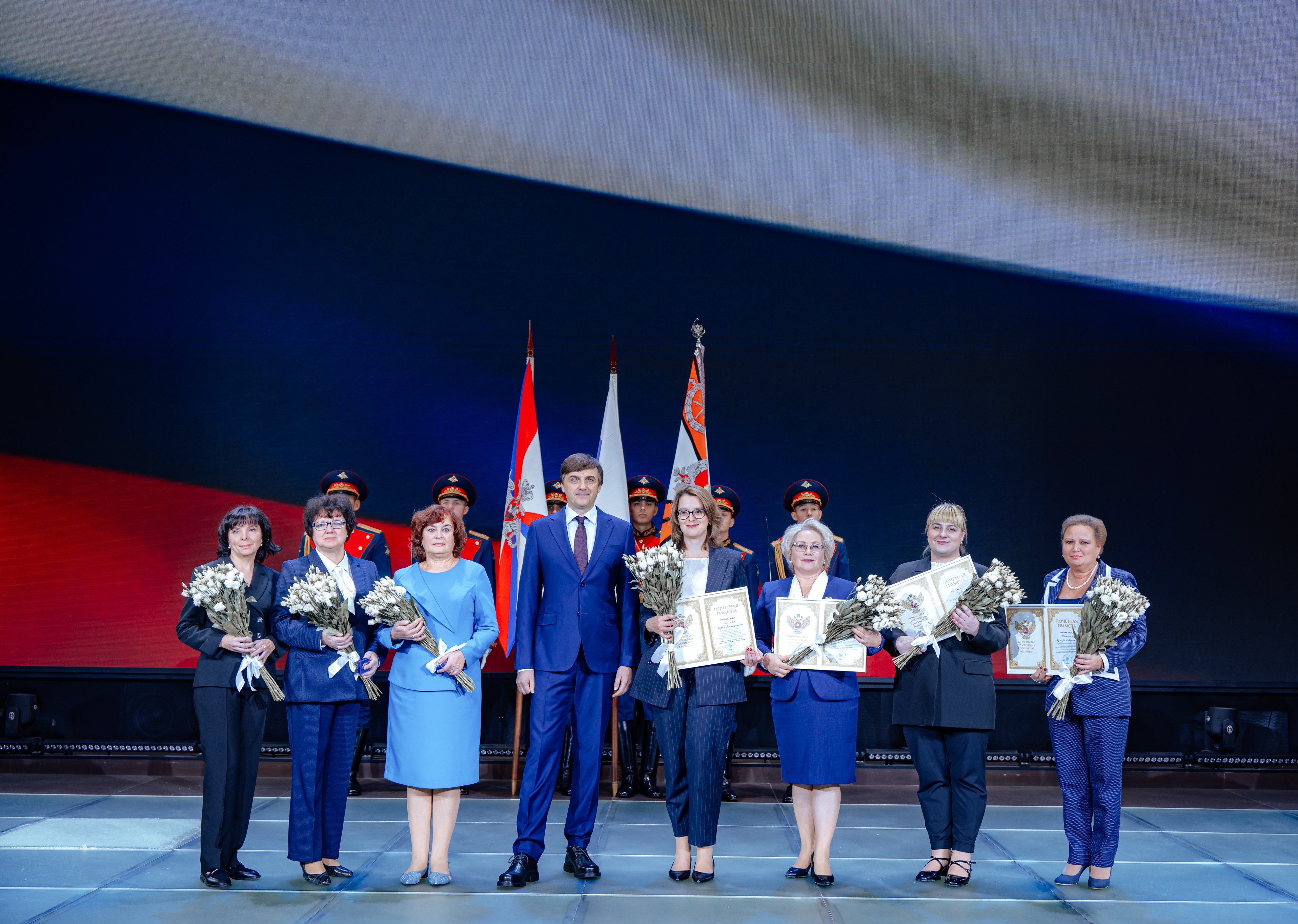 В киноконцертном зале Сергей Сергеевич Кравцов поздравил педагогов Пансиона с прошедшим профессиональным праздником и в торжественной обстановке вручил ведомственные награды за многолетний добросовестный труд и значительные заслуги в сфере образования преподавателям и воспитателям Пансиона.