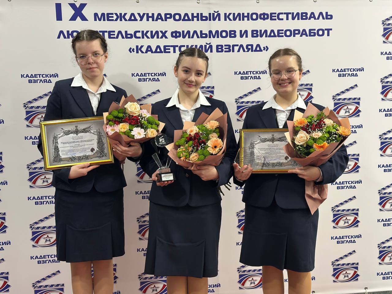 На Торжественной церемонии подведения итогов Кинофестиваля воспитанницам вручили главную награду – «Гран-При» IX Международного фестиваля любительских фильмов и видеоработ «Кадетский взгляд».