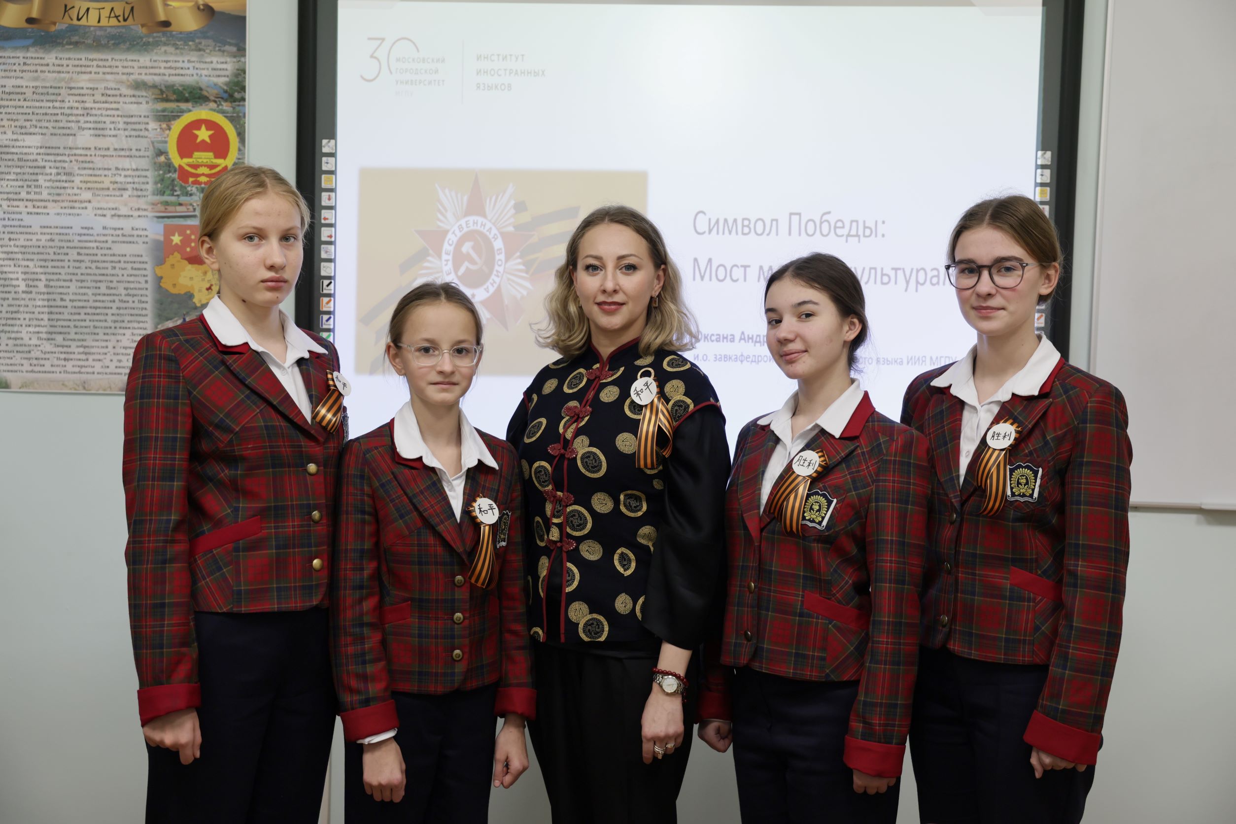 В рамках предметной декады воспитанниц 6-8 курсов приняли участие в мастер-классе «Символы Победы», который провела исполняющая обязанности заведующего кафедрой китайского языка Института иностранных языков МГПУ Оксана Андреевна Малых.