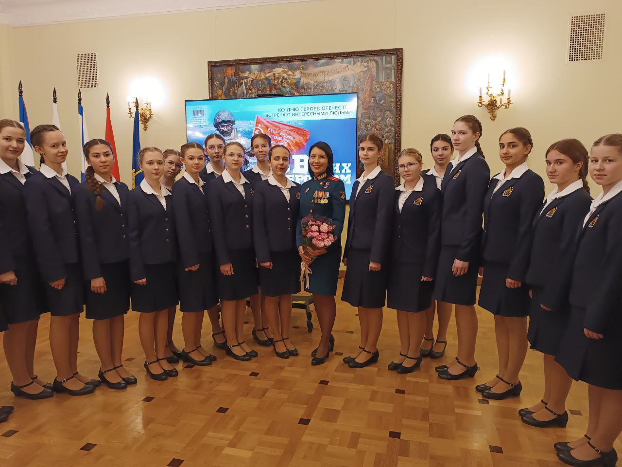 В честь Дня Героев Отечества на каждом учебном курсе прошел единый классный час, на котором воспитанницы узнали об истории возникновения этой памятной даты, о защитниках нашего Отечества разных эпох, чей подвиг стал настоящим примером мужества, героизма и беззаветного служения родине. Воспитанницам рассказали о лётчиках – первых Героях Советского Союза и о подвиге В. Гризодубовой, П. Осипенко, М. Расковой, первых женщинах, которые были удостоены этого высокого звания. Воспитанницы познакомились с историей вручения почетной награды – медали «Золотая звезда» Героя России.