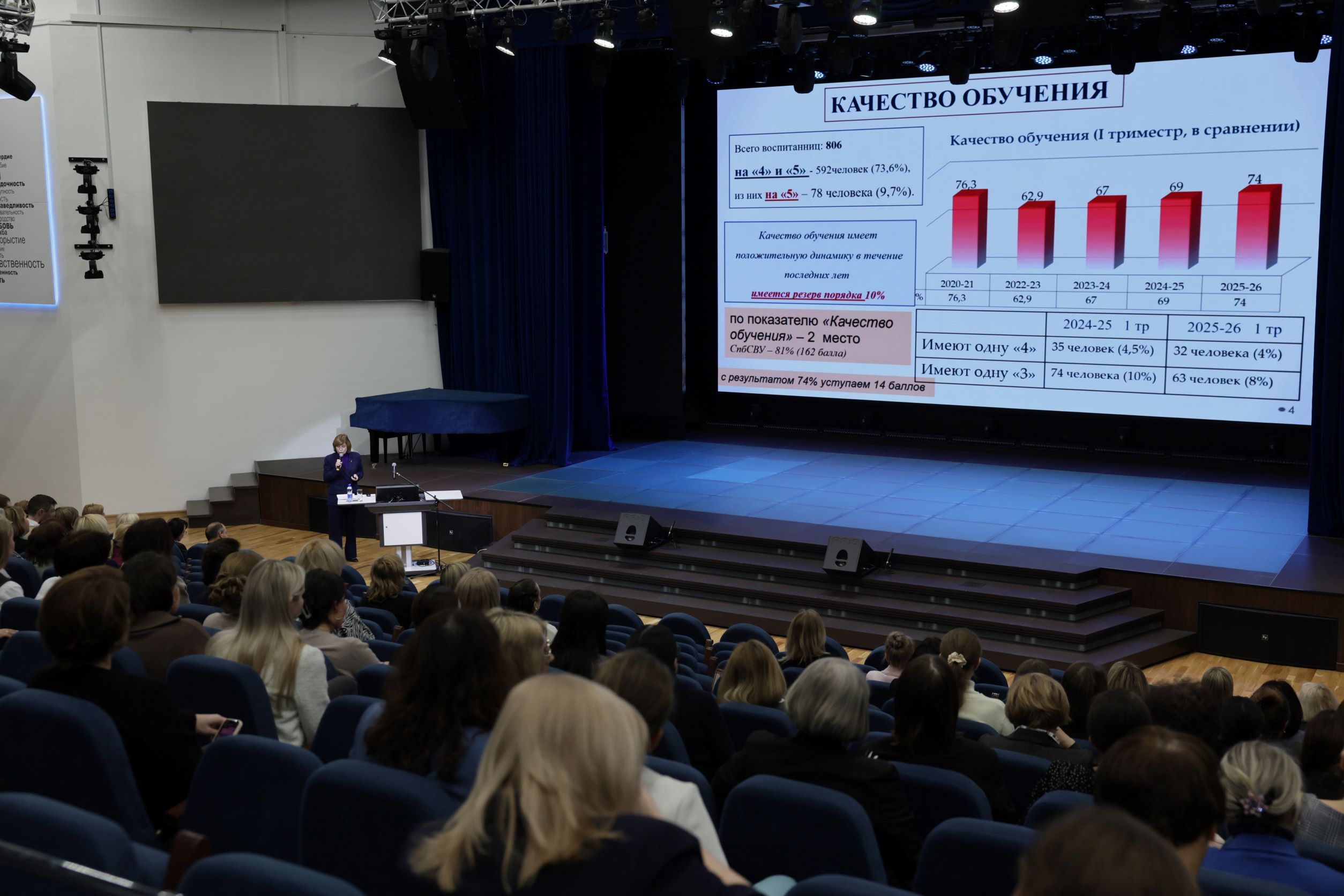На заседании педагогического совета были представлены итоги учебной деятельности, воспитательной и методической работы в первом триместре 2025/2026 учебного года. Участники заседания провели сравнительный анализ образовательных результатов и качества обучения воспитанниц, определили тактику дальнейшей работы в целях повышения эффективности образовательной деятельности в Пансионе воспитанниц.