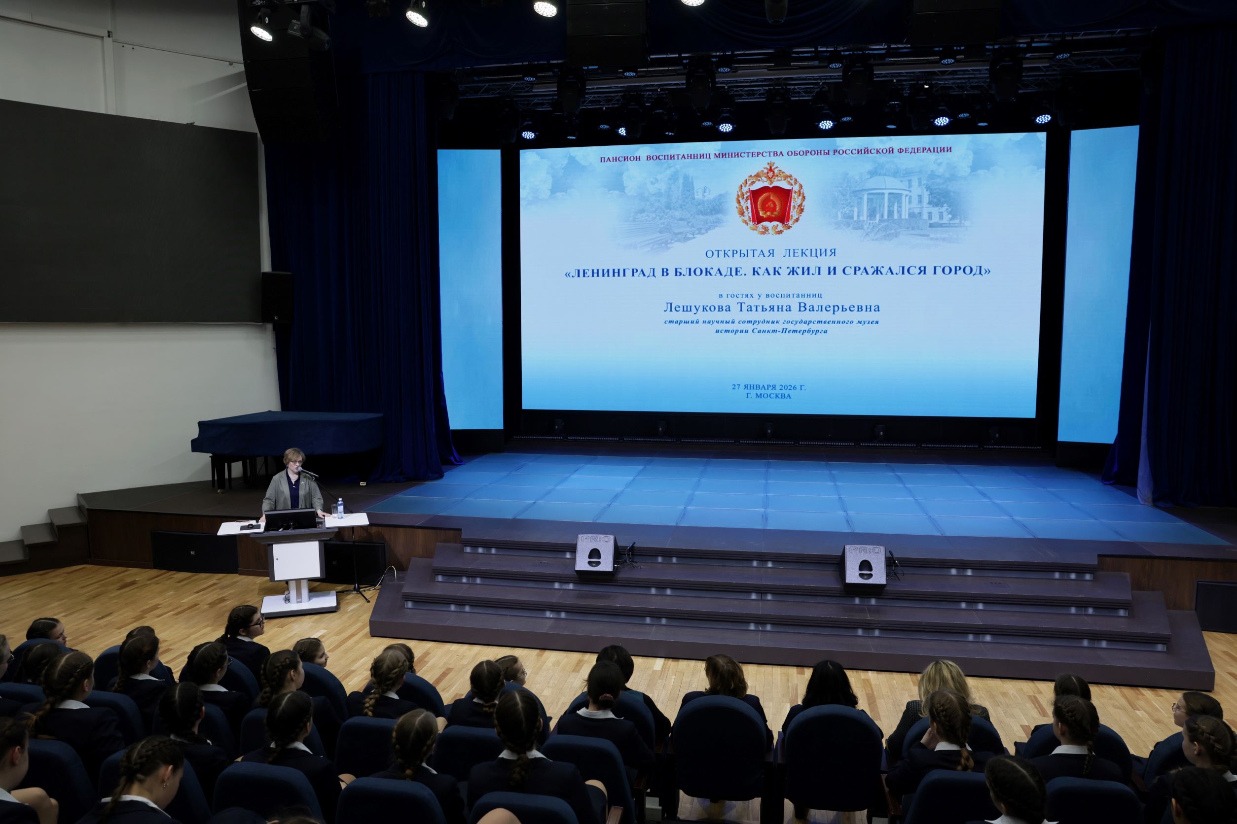 В рамках мероприятий, посвященных Дню полного освобождения Ленинграда от фашистской блокады, в Пансионе воспитанниц состоялась лекция старшего научного сотрудника Государственного музея истории Лешуковой Татьяны Валерьевны