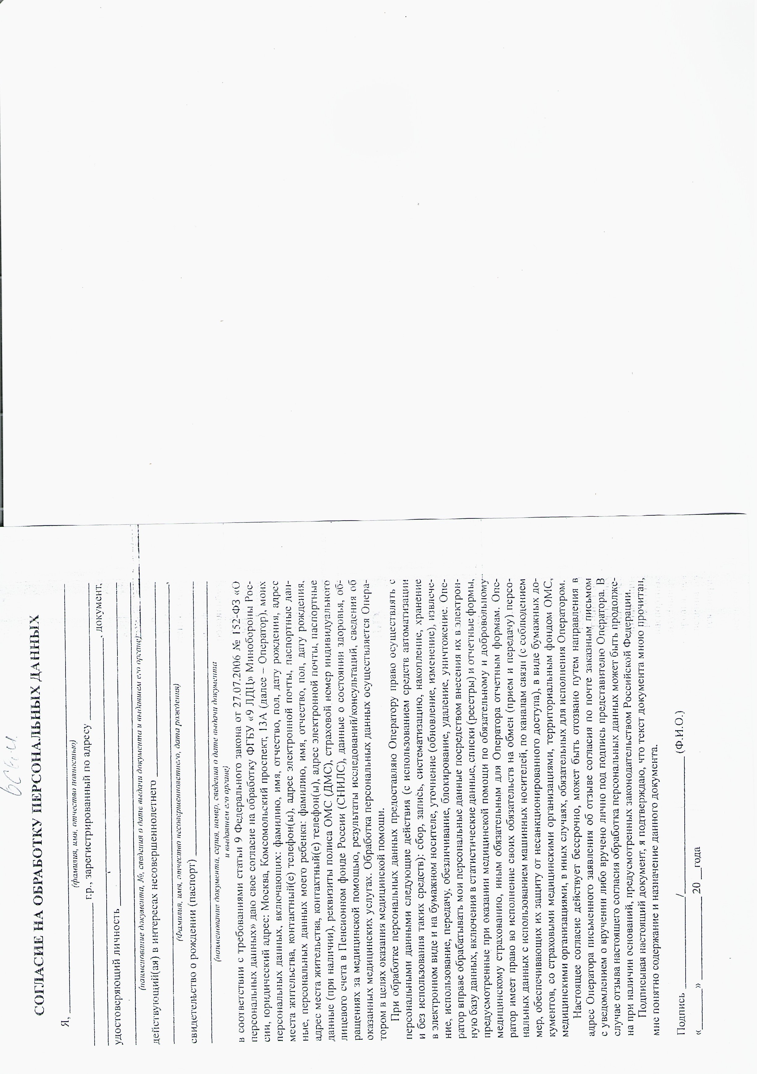 - добровольное информированное согласие на виды медицинских вмешательств и на госпитализацию (согласие на мед.вмешательства);